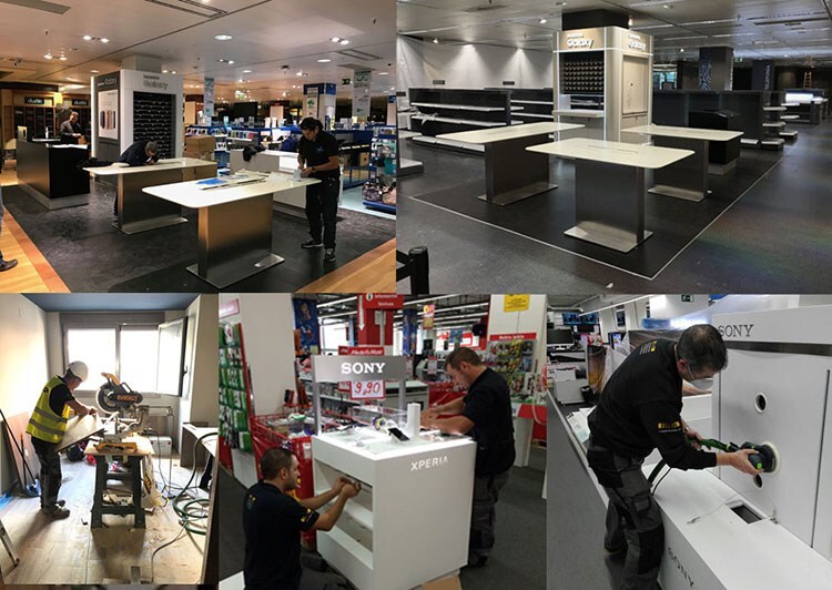 Nuestra especialización más destacada es la instalación comercial en el punto de venta. Instalaciones de mobiliario comercial, desmontaje, restyling y montaje de lineales en cabeceras, mantenimiento, montajes retail e instalación de mobiliario corporativo.